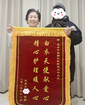 近日,北京融科医院理疗室内暖意融融,患者康女士将一面锦旗送到胡明筠老师手中,感激之情溢于言表。......
