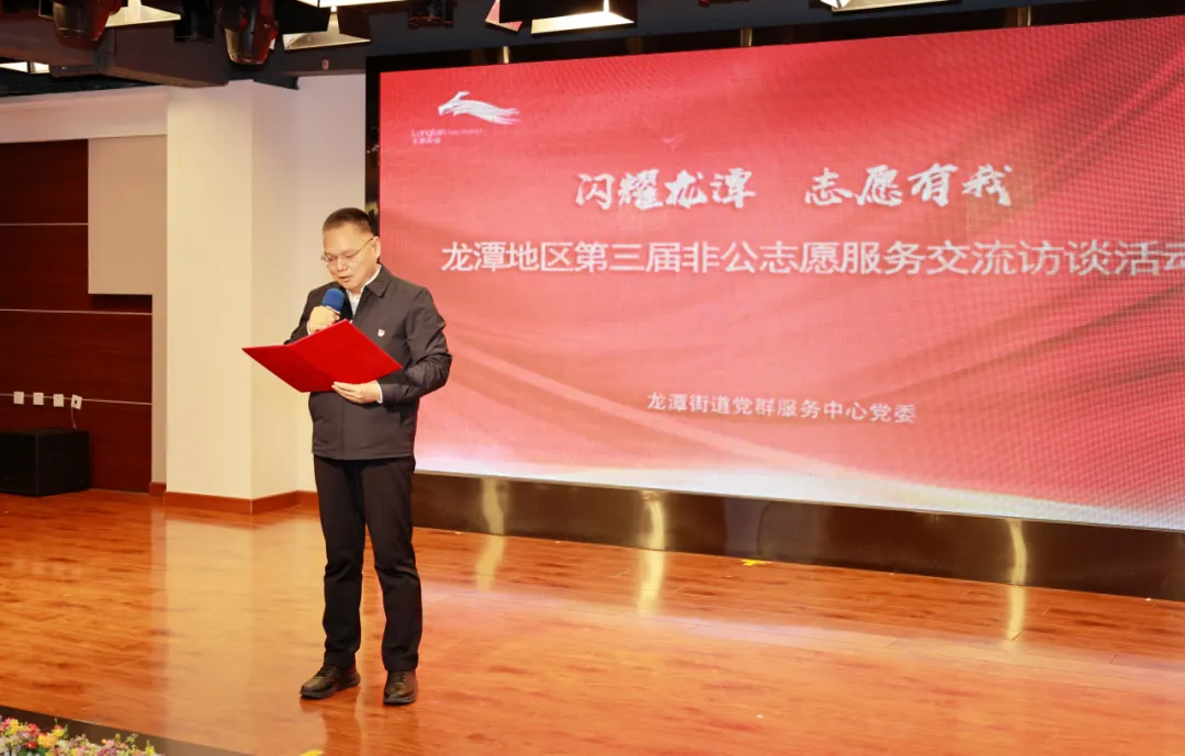 龙潭街道工委书记王晓军致辞,充分肯定各非公单位在志愿服务中取得的成效,并对未来工作提出明确期望。