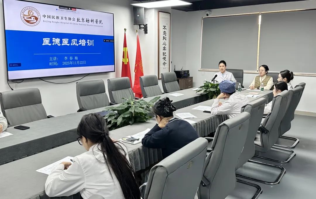 医德医风是医疗工作的灵魂,也是构建和谐医患关系的基石。为进一步筑牢医务人员的思想道德防线,规范医疗服务行为,营造风清气正的医疗环境,2025年11月22日下午,北京融科医院组织开展医德医风专项培训。本次培训由医院业务院长李春梅主讲,各临床科室、护理、医技、行政及后勤人员共同参与。