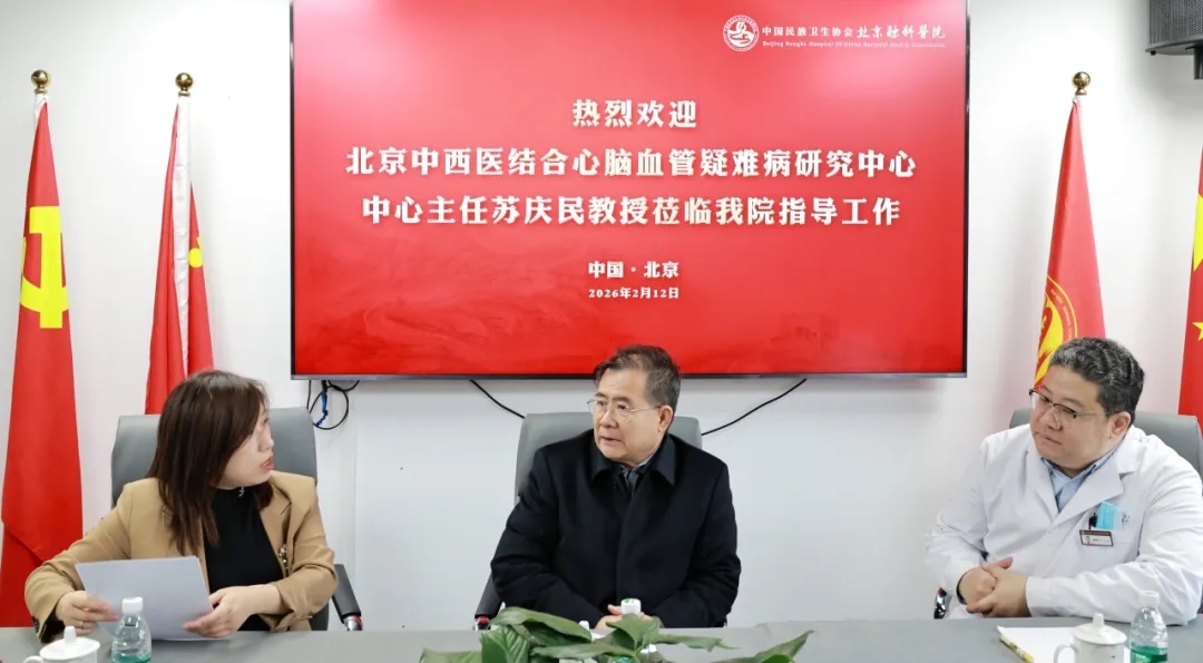 2月12日上午,北京中西医结合心脑血管疑难病研究中心中心主任苏庆民教授莅临中国民族卫生协会北京融科医院,开展实地考察与工作指导。我院刘春艳院长、黄笑飞院长全程陪同,对苏庆民教授的到来表示热烈欢迎。