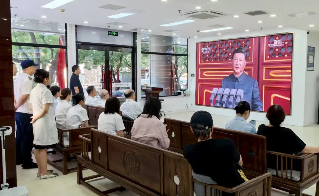 2025年9月3日上午,中国人民抗日战争暨世界反法西斯战争胜利80周年纪念日,一场震撼人心的阅兵式在北京天安门广场隆重举行。北京融科医院组织医护人员集体观看这场气势恢宏的阅兵直播,共同见证这一承载着历史与荣耀的时刻。