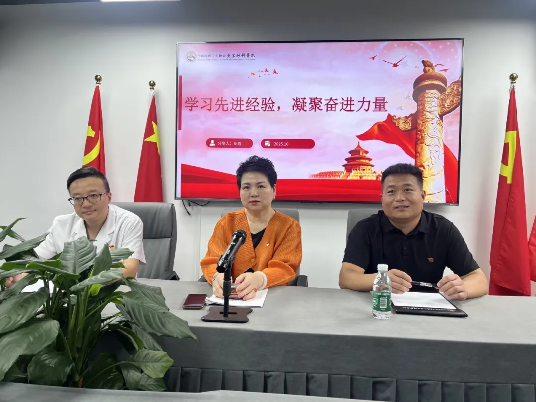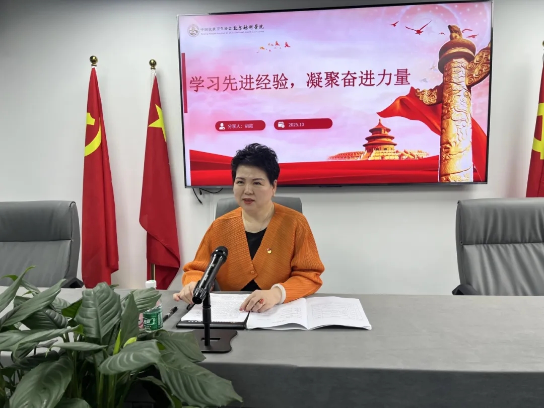 近日,中国民族卫生协会北京融科医院党支部书记胡霞参加了市卫生健康委举办的新兴领域党组织书记示范培训班。为将所学所悟更好地运用到实际工作中,10月5日上午,组织开展此次胡霞书记学习分享会,与大家共同交流学习成果。